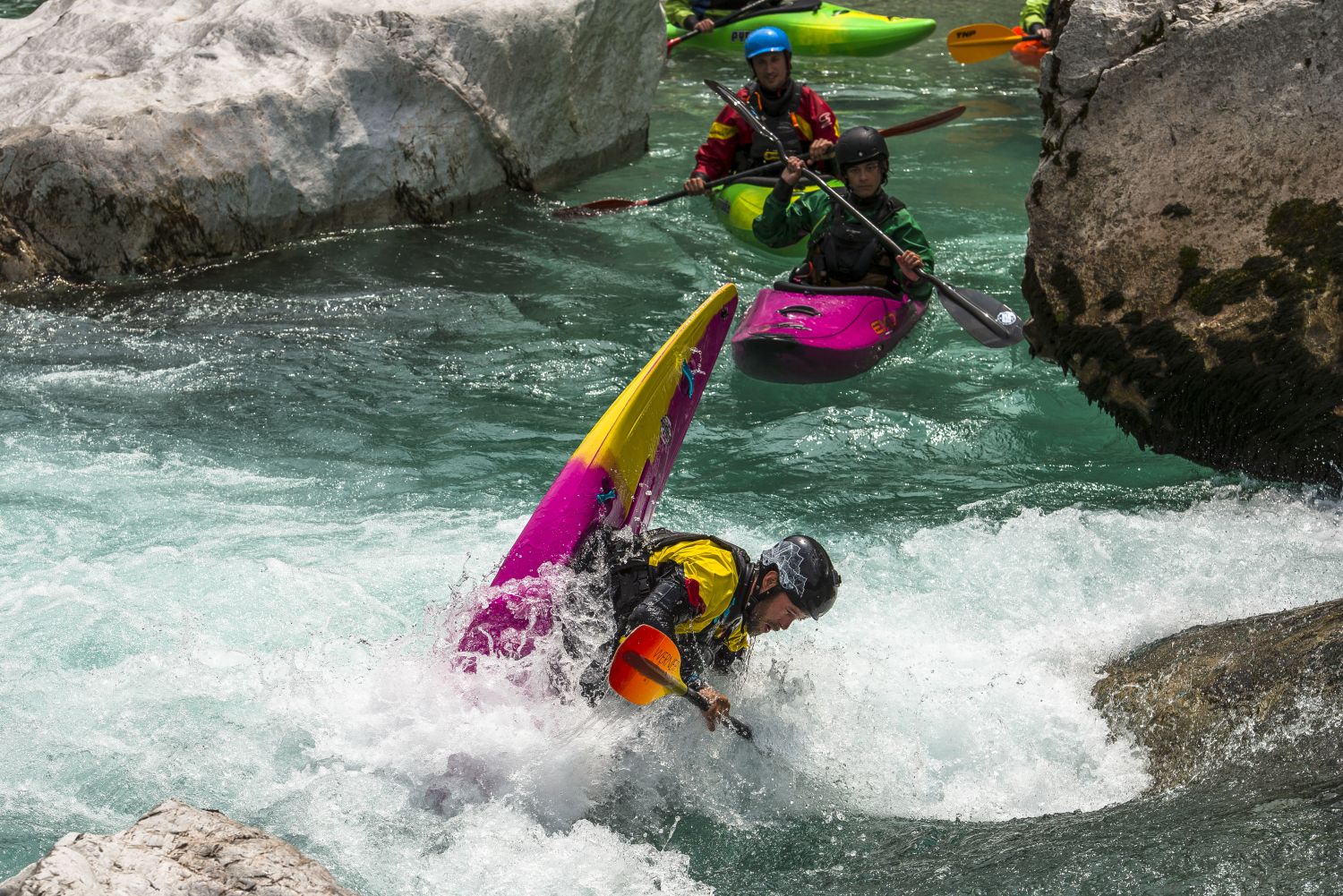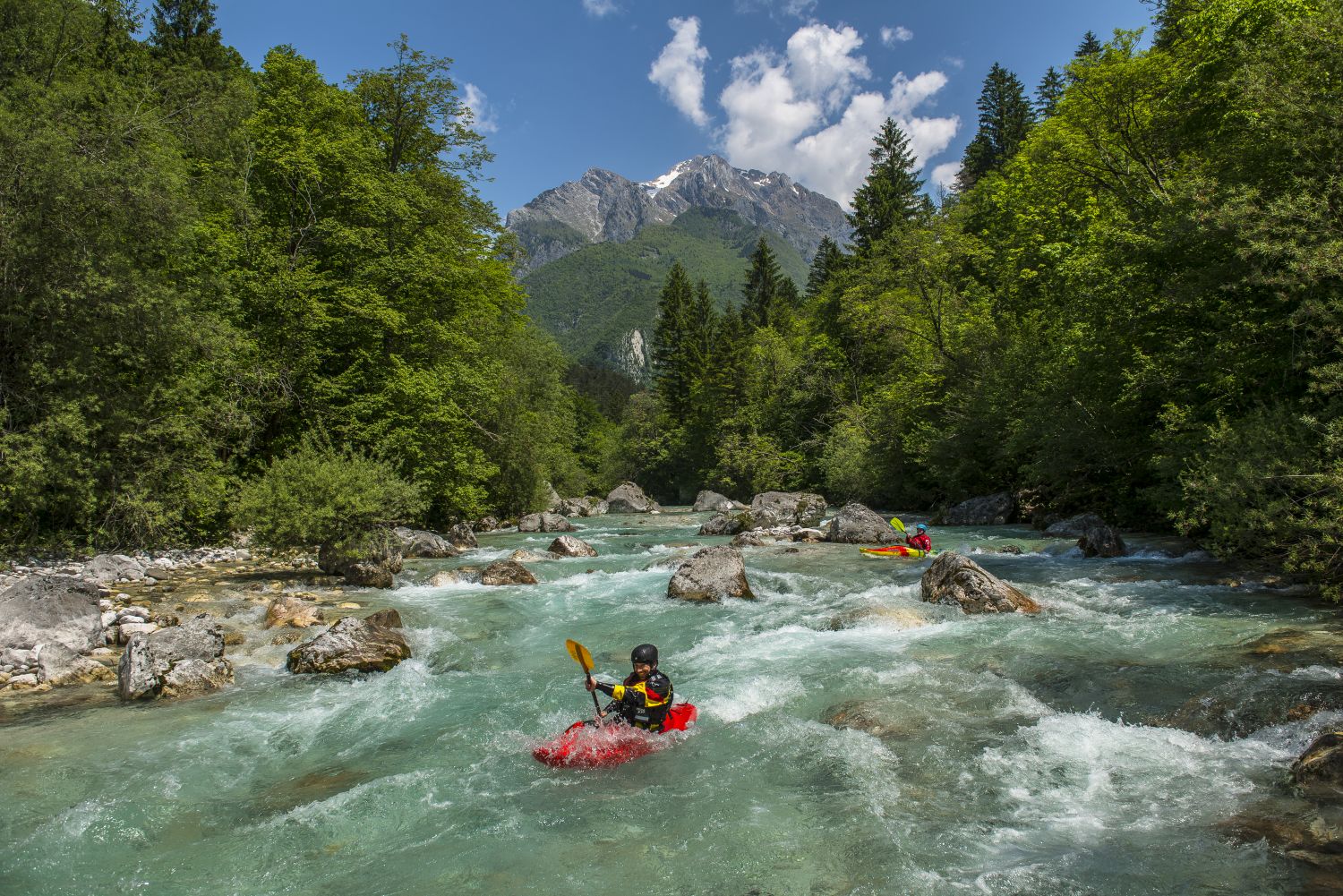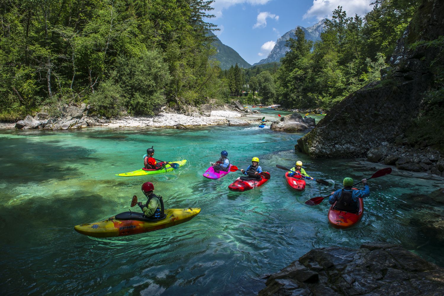 Liebe Kajakfreunde! Es gibt viele Wildwasserflüsse auf der Welt, doch es gibt nur eine smaragdfarbene Soca. Ein Flussgott, im Herzen Europas, mit Wildwasser von 1 bis 5, in der Mitte der Julischen Alpen Sloweniens – ein Ziel, das jeder Kajaker einmal besucht haben sollte. Die Soca Kajakschule ist der beste Platz, um Wildwasserkajak fahren zu lernen. Wir schulen von absoluten Anfängerkursen bis zum Techniktraining für Fortgeschrittene. Und welcher Wildwasser Schwierigkeitsgrad auch immer benötigt wird: das richtige Flussstück ist nie weiter als eine halbe Stunde Fahrt entfernt. Die Soca Kajakschule ist eine deutschsprachige Schule im Socatal. Wir kümmern uns gerne um alles: deinen Kajakkurs, der Transfer zu den Ein- und Ausstiegsstellen und wenn du das möchtest, auch die Unterkunft. Dann kannst du dich auf das Wichtigste konzentrieren: deine Paddeltechnik und die atemberaubende Natur rund um Bovec.