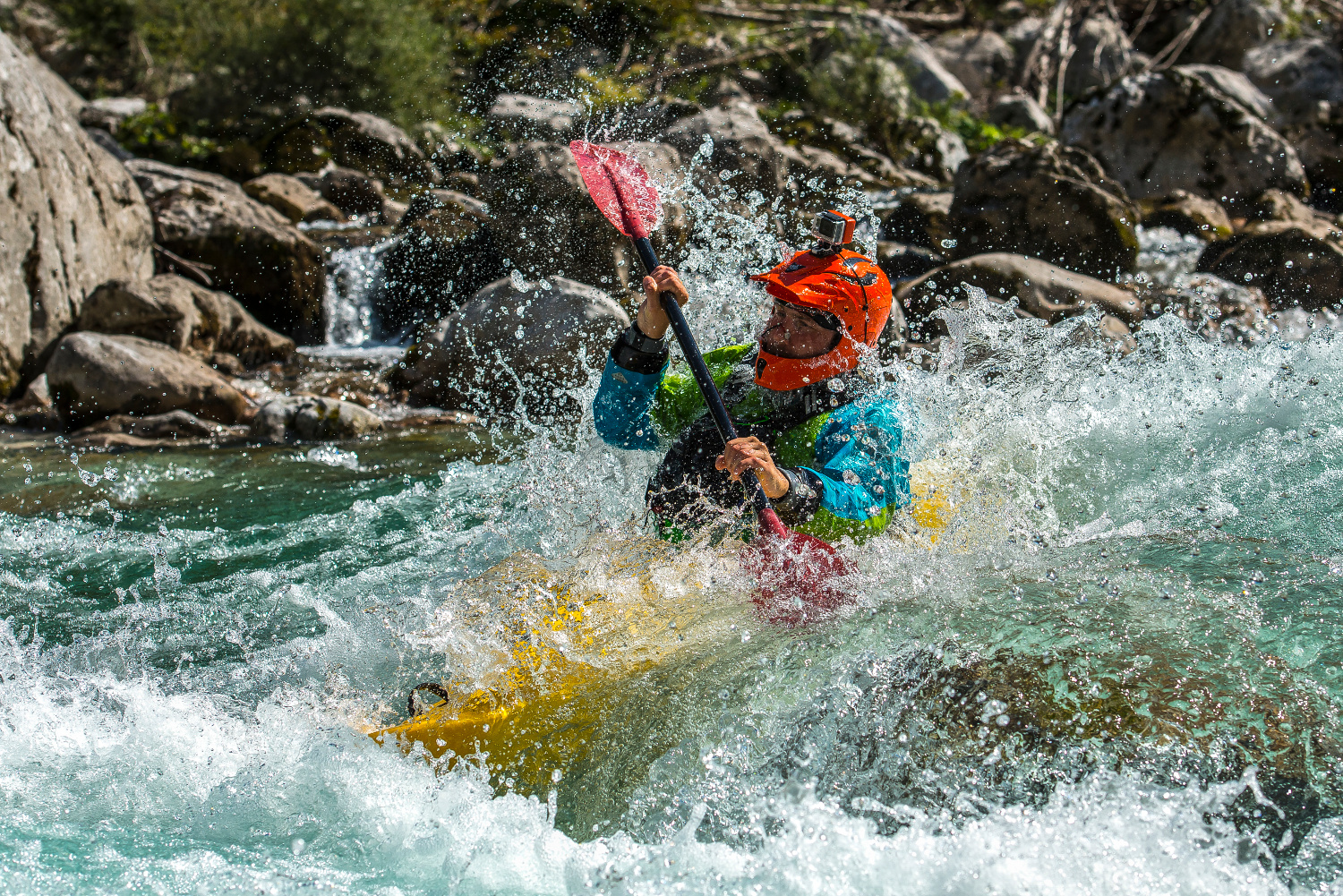 Hierzu zählt: dein Wildwasser Kajak, die dazugehörige Spritzdecke (um den Wassereintritt zu verhindern) ein Paddel, der passende Neoprenanzug, Neoprenschuhe, Paddeljacke, Schwimmweste, und natürlich ein Kajakwildwasser Helm.